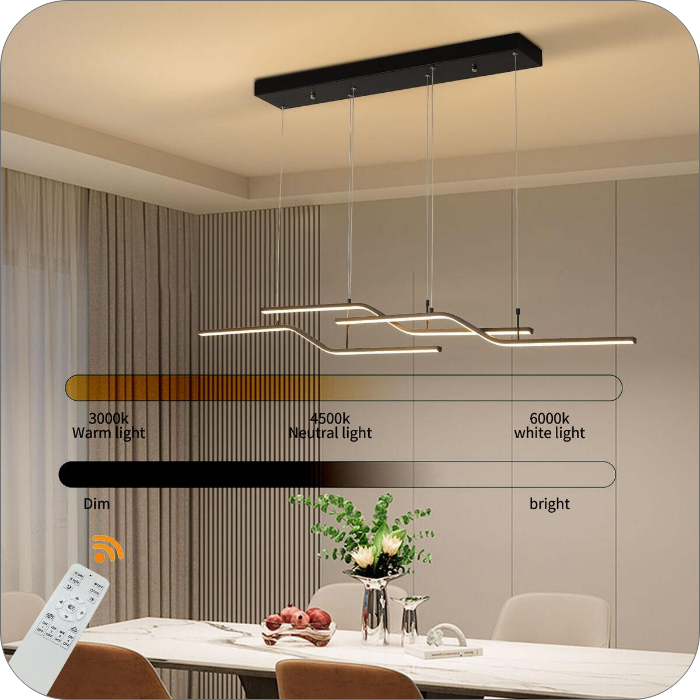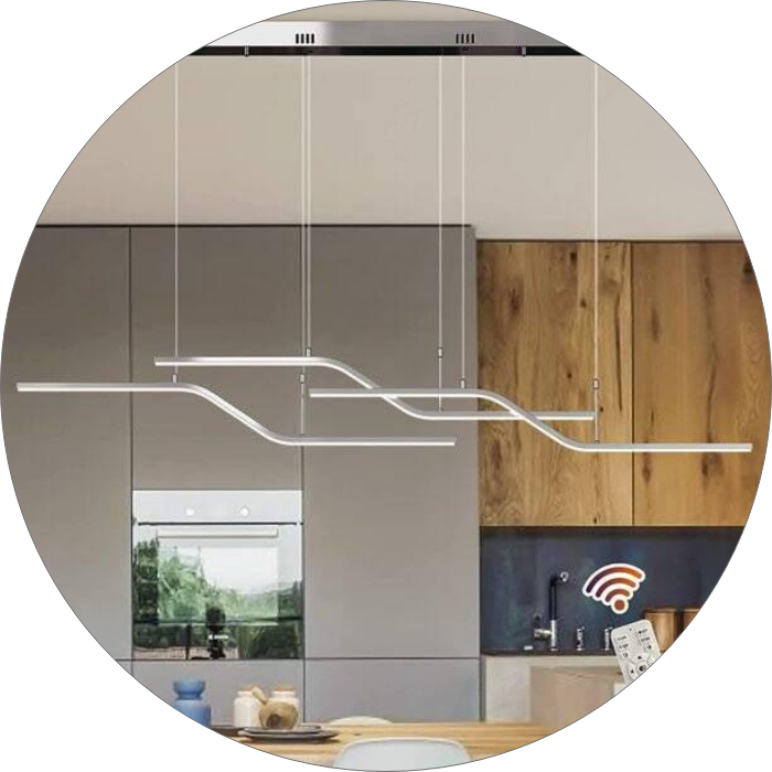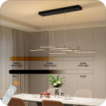 لوستر مدرن خطی ، چراغ آویز خلاقانه طرحی جدید و فوق العاده جنس بدنه آلومینیومی و رنگ بدنه رنگ کوره ای درجه یک در سایز ۱.4۰ سانتی متر در رنگ های سفید و مشکی و طلایی میزان نور دهی ۵۰ وات اس ام دی رنگ نور میتوانید آفتابی و نچرال و یخی سفارش دهید ارتفاع از سقف قابل تنظیم دهنه کار با سیلیکون نسوز بسته میشود.