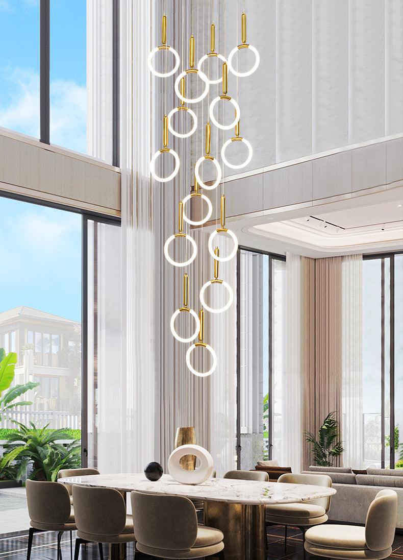 یکی از ویژگیهای مهم این محصول، قابلیت انتخاب تعداد حلقهها و تغییر اندازه کفی است که امکان اجرای طرحهای متفاوت و کاملاً شخصیسازیشده را فراهم میکند. همچنین ارتفاع لوستر از ۱ متر تا ۳۰ متر قابل تنظیم است، بنابراین برای سقفهای کوتاه و بلند کاملاً مناسب و انعطافپذیر میباشد.