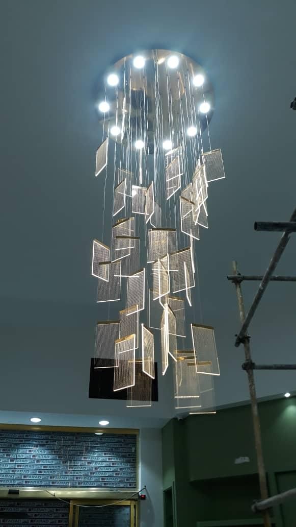 لوستر مدرن پلکسی گلاس بلند – طراحی حرفهای و نوردهی ترکیبی