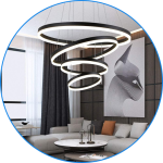 لوستر LED مدرن خلاقانه طرحی جدید و فوق العاده خاص لوستر مدرن سقفی پلکسی لبه ۷سانت سانت با لبه های پلکسی گلاس تایوانی درجه یک مات مناسب انواع پذیرایی و پاگرد و سقف های بلند سایز حلقه ها سی- چهل – پنجاه – شصت و هفتاد سانتی متر می باشد ارتفاع از سقف قابل تنظیم بدنه فلزی آلومینیومی با رنگ کوره ای درجه یک دقیقا کیفیتی مشابه نمونه های وارداتی گارانتی ۱۸ ماهه معتبر ،لازم به ذکر است که این سبک لوستر ها را با تغییر حالت آویز شدن به شکل های مختلف تبدیل کنیم و ارتفاع از سقف انها قابل تنظیم میباشد.