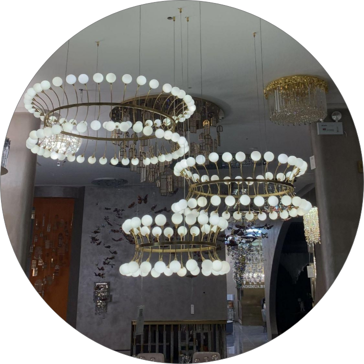 حبابها: هر حباب ۸ سانتیمتر، طراحی ظریف و متناسب با فرم دایرهای لوستر.