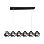 میلهی اصلی این لوستر با طول ۱۲۰ سانتیمتر طراحی شده و چندین حباب شیشهای با رنگهای جذاب دودی، جیوهای، شامپاین و سفید روی آن قرار گرفتهاند.