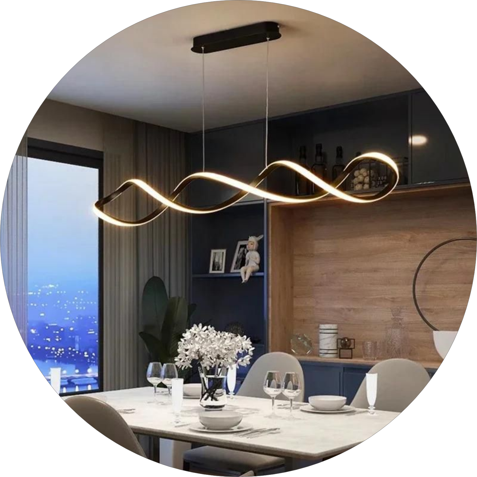 این لوستر دارای فرم موجی و منحنی است که هم زیبایی بصری فوقالعادهای ایجاد میکند و هم در نورپردازی محیط نقش مهمی دارد. ترکیب پروفیل باریک با خطوط نرم نور، ظاهر مینیمال و بسیار شیک به محصول داده است.