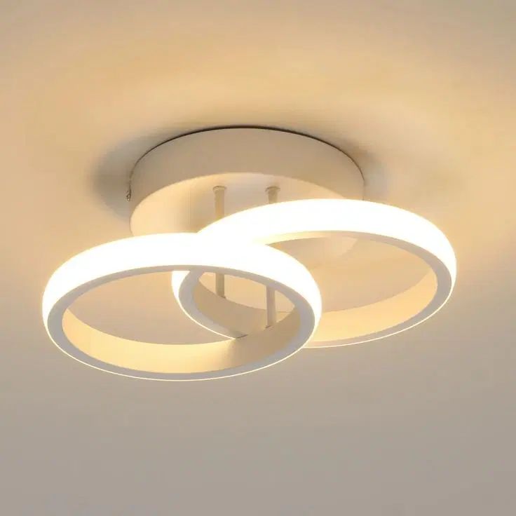 این لوستر از نوع LED مدرن و کمارتفاع است که به صورت مستقیم به سقف نصب میشود و به دلیل طراحی خاص با دو حلقه نورانی درهمتنیده، جلوهای بسیار زیبا، مینیمال و همزمان لوکس به فضا میدهد.