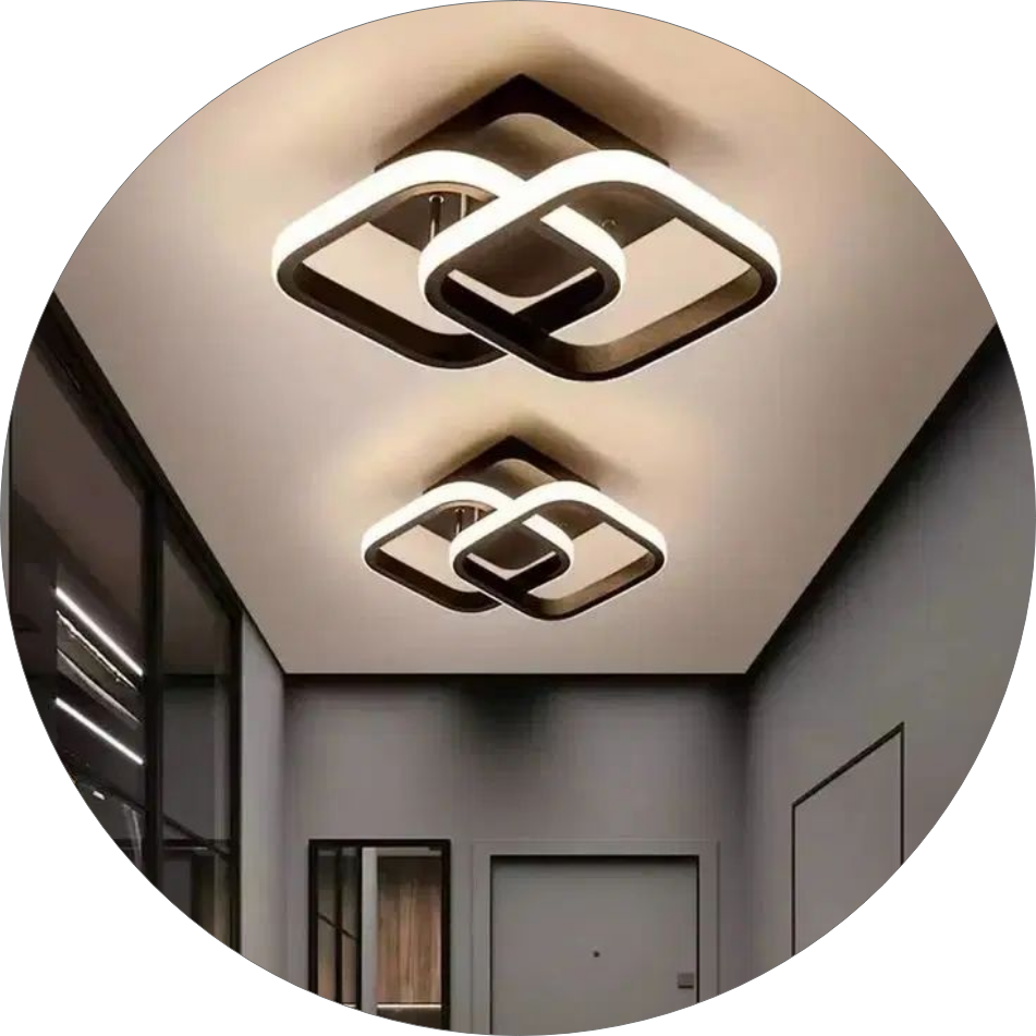 لوستر سقفی مدرن طرح مربع تودلی چسبیده به سقف با طراحی چهارضلعیهای درهمتنیده یا هندسی است؛ یکی از مدلهای بسیار محبوب در دکوراسیونهای مدرن و مینیمال امروزی.