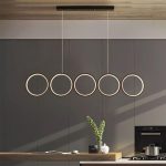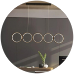 این لوستر با چینش خطی و متقارن حلقههای نورانی خود، جلوهای خاص و چشمگیر ایجاد میکند و انتخابی عالی برای بالای میز ناهارخوری، کانتر آشپزخانه یا فضاهای اداری مدرن است.