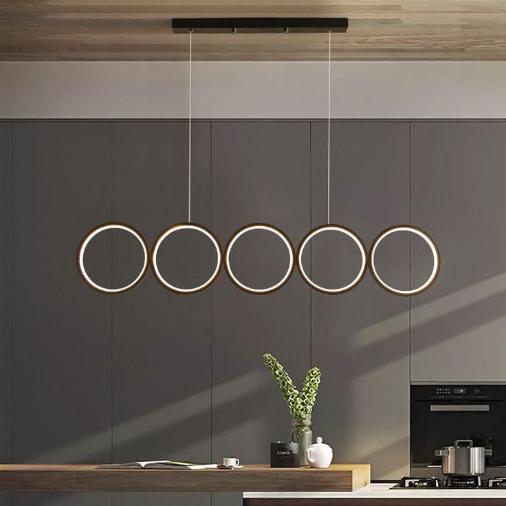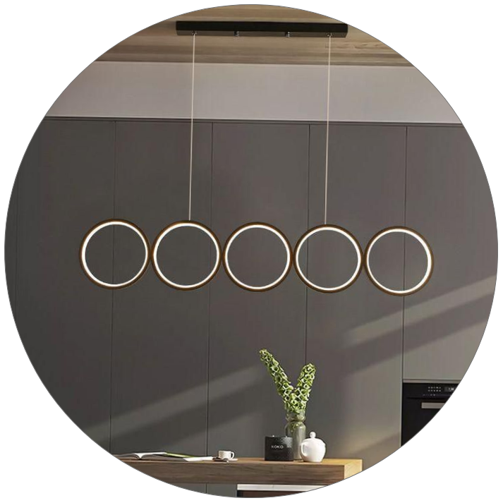 پنج حلقه نورانی با آرایش خطی، فرمی منظم و متوازن به فضا میبخشند.