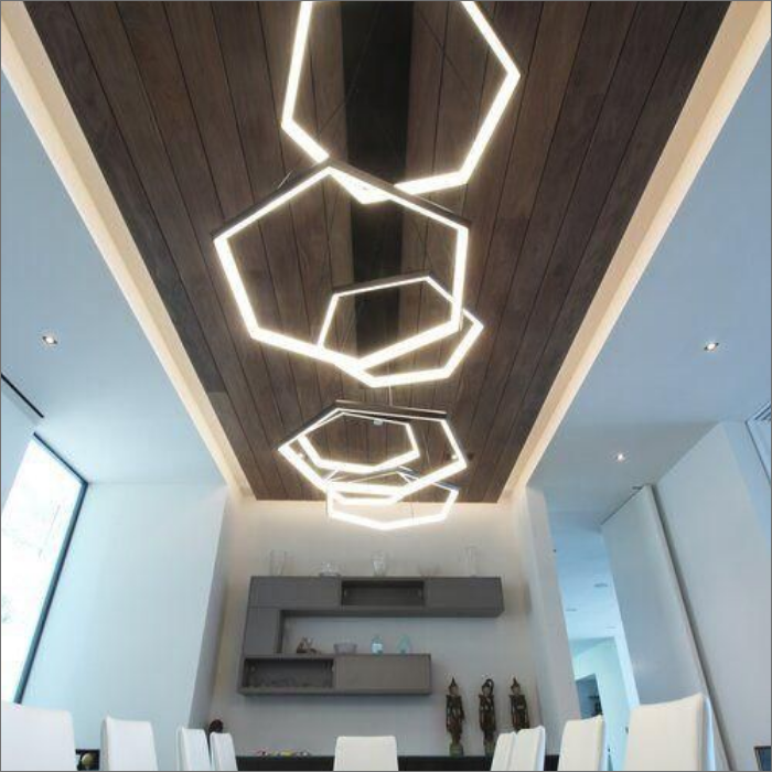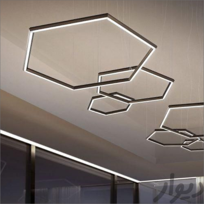 لوستر مدرنsmdطرحی زیبا و خاص لوستر مدرن طرح شش ضلعی 70سانتی زیبا و جذاب جنس بدنه الومینیوم در دو رنگ بدنه مشکی و طلایی میباشد رنگ نور افتابی