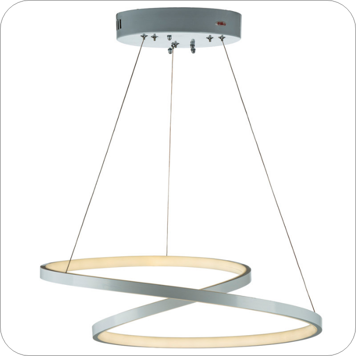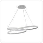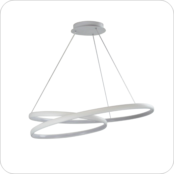 لوستر مدرن ،خلاقانه با سیم ارتفاع قابل تنظیم لوستر حلقه ای طرح تو دلی 60 واتی که از دو حلقه سایز های سی و پنجاه پنچ سانتی تشکیل شده است و بسیار مناسب سالن پذیرایی اتاق غذاخوری اتاق خواب اتاق خواب میباشد ارتفاع از سقف انها قابل تنظیم میباشد دارای ریسه های اس ام دی میباشد.رنگ نور آفتابی مهتابی یخی سه رنگ