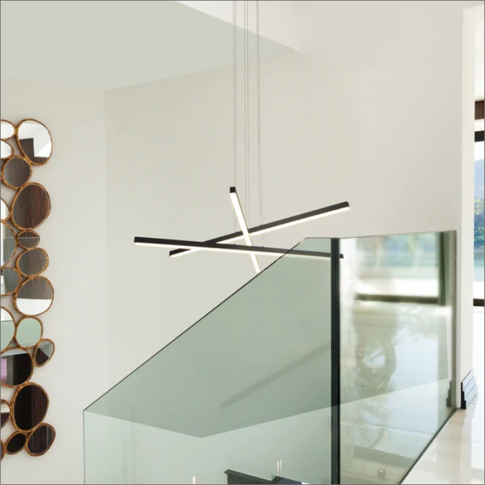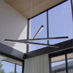 لوستر LED مدرن ، چراغ آویز خلاقانه با سیم ارتفاع قابل تنظیم یک متری، لوستر سقفی خطی سه لاینه یک متری میباشد که در این طرح سه لاین خطی یک متری با 50 وات نوردهی که از پروفیل سایز دو در دو تولید شده است و بسیار مناسب سالن پذیرایی اتاق غذاخوری اتاق نشیمن اتاق خواب میباشد، ارتفاع از سقف نیز قابل تنظیم میباشد.