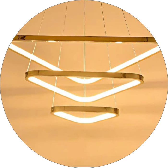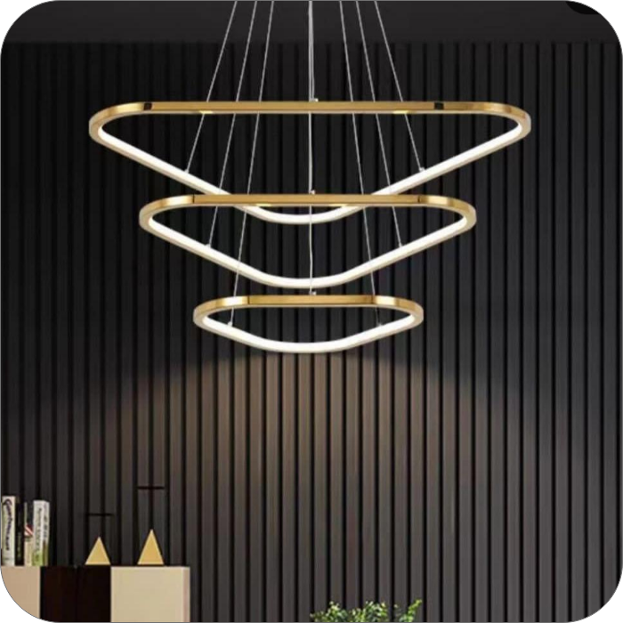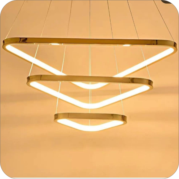 لوستر LED مدرن طرح مثلث جدید و فوق العاده خاص برای فضایی خاص و مدرن جنس بدنه آلومینیومی با رنگ کوره ایی در سایزهای ۳۰ و ۵۰ و ۷۰ سانتی متر میزان نور دهی ۱۰۰ وات اس ام دی ارتفاع از سقف قابل تنظیم میباشد دهنه کار با سیلیکون نسوز بسته میشود.