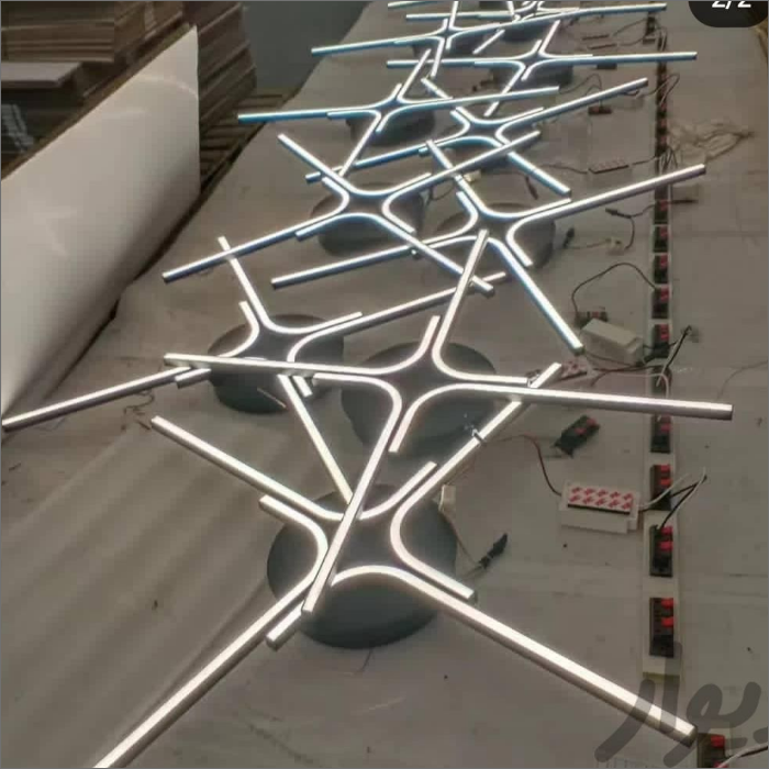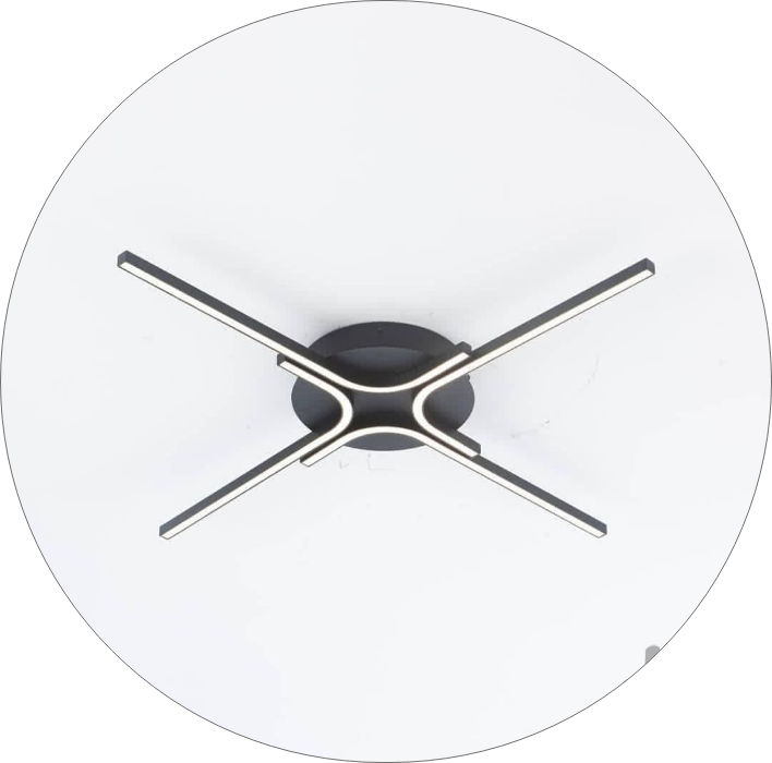 لوستر مدرن سقفی طرح پلاس تشکیل شده از4 پروفیل خمیده مدرن جنس بدنه آلومینیوم ضخیم رنگ بدنه رنگ کوره ای درجه یک در رنگ نور آفتابی نچرال یخی در ابعاد 70سانتی با لبه های 5سانتی ورقه فلزی یک میل دهنه کار با سیلیکون نسوز میباشد رنگ بدنه مشکی طلایی میباشد .قابل سفارش در ابعاد دلخواه