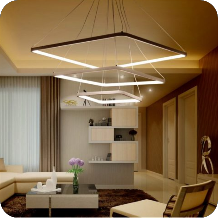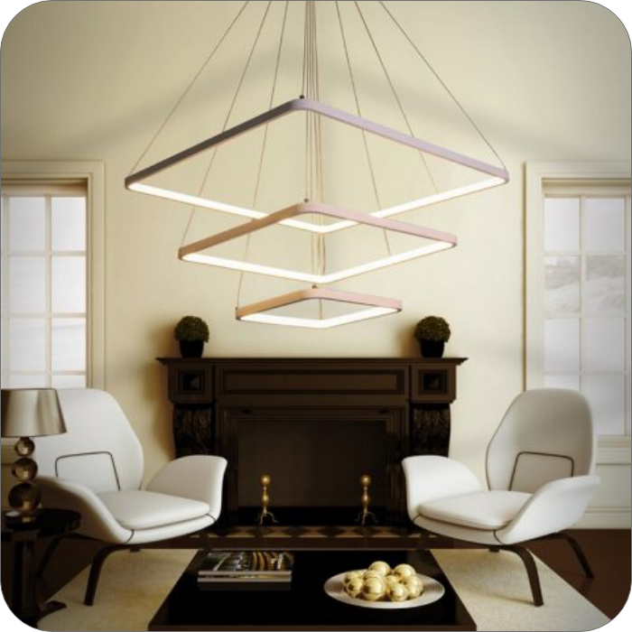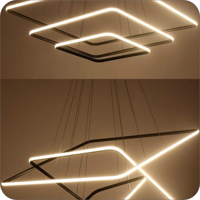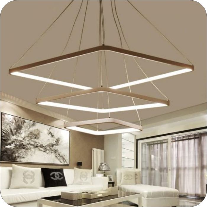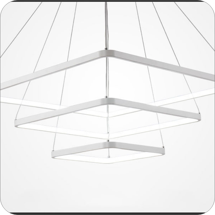 لوستر LED مدرن ، چراغ آویز خلاقانه با سیم ارتفاع قابل تنظیم یک متری، لوستر مربع ایی 100 واتی که از سه طبقه سایز های 30 و 50 و 70سانتی تشکیل شده است و بسیار مناسب سالن پذیرایی و اتاق و آشپزخانه میباشد،لازم به ذکر است که این سبک لوستر ها را با تغییر حالت آویز شدن به شکل های مختلف تبدیل کنیم و ارتفاع از سقف انها قابل تنظیم میباشد.