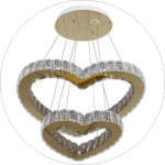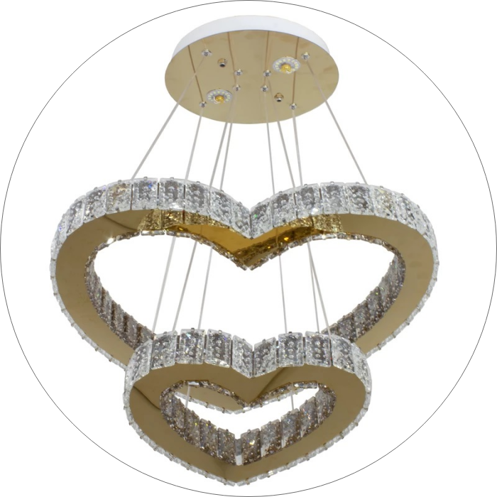 لوستر مدرن سقفی طرح قلب کریستالی دو طبقه 20و40سانتی متر جذاب دارای لامپهای نواری خطی با تراکم 180 شامل ترانس ایزوله است که مانع از برق گرفتگی میشود رنگ نور سه رنگ،رنگ بدنه طلایی ریسه های اس ام دی همراه کریستال درجه یک بسیار باکیفیت ارتفاع از سقف قابل تنظیم
